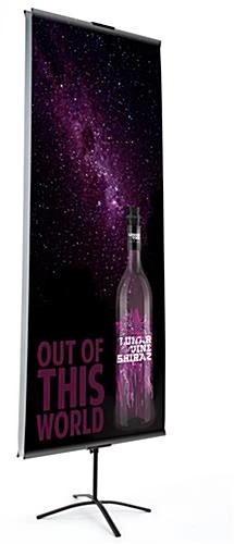 Banner Stand With Custom 24″w Graphic, Adjustable Height, Single Sided – Black