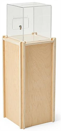 Wooden Ballot Box W/ Recycled Acrylic Topper, Locking, Floor Standing – Natural