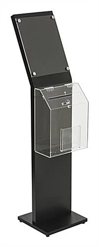 Acrylic Ballot Box W/ 8.5 X 11 Sign Holder, Front Pocket, Floor Standing – Black