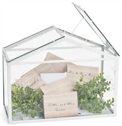 17.75 X 14 Glass Card Box W/ Hinged Top Loading Doors, Countertop – White