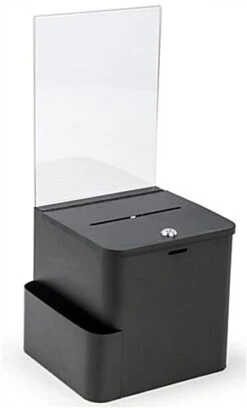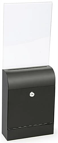 Locking Metal Ballot Box W/ 8.5 X 11 Acrylic Header, Wall Or Countertop – Black