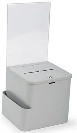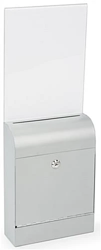 Locking Metal Ballot Box W/ 8.5 X 11 Acrylic Header, Wall Or Countertop – Silver