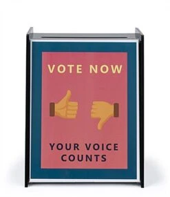 Acrylic Ballot Box With 11 X 14 Sign Holder, 2 Side Pockets, Floor Standing – Black