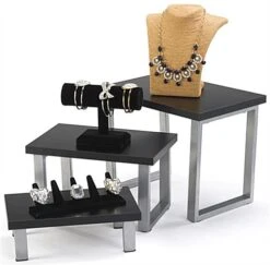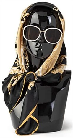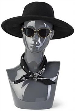 Female Mannequin Bust With Abstract Facial Features, Countertop – Glossy Black