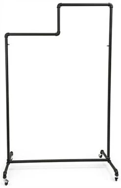 Pipeline Clothing Rack With Double Tiered Bars, 4 Wheels – Black
