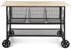 Retail Cart W/ Wheels, 47.25″ W X 16.5″ D X 32″ H, Iron And Oak – Black