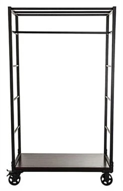 Rolling Clothing Rack With 2 Wooden Shelves & Hanging Rail – Mahogany