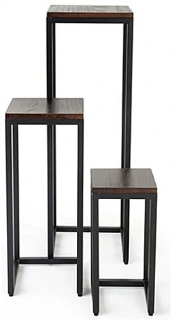 Wooden Pipeline Nesting Table, Rectangular, Metal Legs – Dark Brown