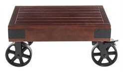 Wooden Retail Table With Wagon Wheels, 2 Locking – Mahogany