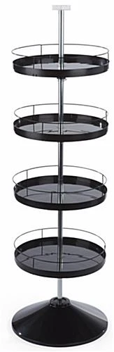 4 Tier Display Rack W/ Rotating Trays, Floorstanding, Top Sign Clip – Black