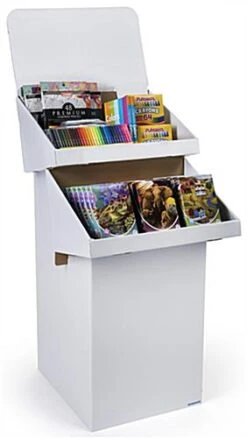 Cardboard Display For Floor, 2 Tiers, Removable Header – White