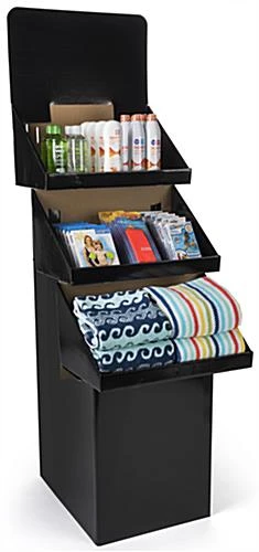 Cardboard Display For Floor, 3 Tiers, Removable Header – Black