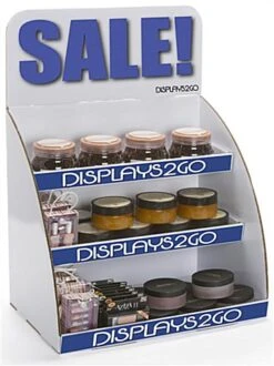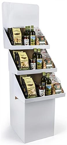 Cardboard Display For Floor, 3 Tiers, Removable Header – White