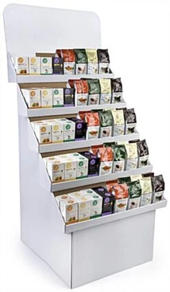 Cardboard Display For Floor, 5 Tiers, Removable Header – White