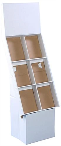 3-Tiered Cardboard Magazine Floor Stand, 8.5″w, Header, Ships Flat – White