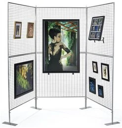Art Display Grid, V-Shaped, (4) 3′ X 3′ Panels, Iron Mesh – Silver