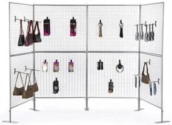 Art Display Grid, U-Shaped, (6) 3′ X 3′ Panels, Iron Mesh – Silver