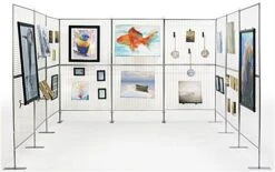 Art Display Grid, U-Shaped, (8) 3′ X 3′ Panels, Iron Mesh – Silver