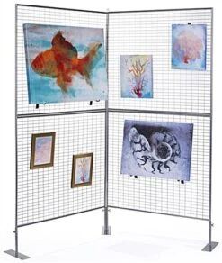Art Display Grid For Countertop, V-Shaped, (2) 3′ X 3′ Panels, Iron Mesh – Silver