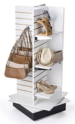 Slatwall Pinwheel Fixture, 4 Sides, Rotating, Base Wheels – White