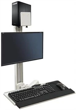 Workstation For Wall, Fits 15”–27” Monitors, Keyboard & Mouse Tray – Silver