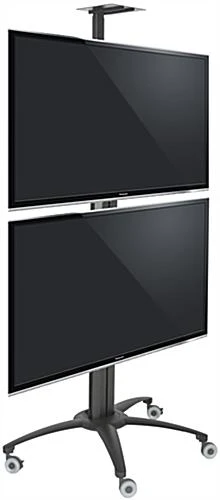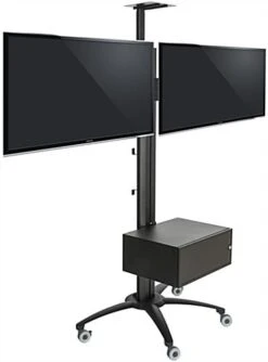 Dual TV Stand W/ Power Outlets, (2) 30 – 60″ Screens, Wheels & Camera Mount – Black