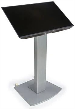 TV Stand For Floor With Power Strip, Fits Monitors 10 – 60-In, Angled Design – Silver