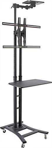 Rolling TV Stand, (2) 10-24″ Screens, Power Outlets, CPU Holder & Shelf – Black