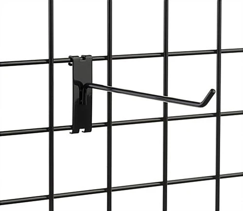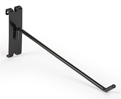 Sold as a set of 25, each 10” black gridwall single stem hook offers ample space to display a variety of products. Allow customers to quickly scan the metal hangers on your wire store fixtures. With a 30° bent tip, this long black gridwall single stem hook helps secure items in place while shoppers browse.