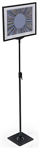 Showcase a menu, feature prices by a pallet, or promote event advertisements within this 11” x 14” floor sign stand that is suitable for a range of businesses. Display two prints simultaneously within the double sided frame that includes protective PVC lenses. Each top loading sign stand makes advertising easy to maintain as new products or menu options arise. Valuable store space is left up for grabs thanks to the square steel base that offers stability without over populating your shop. A height extendable pole provides placement versatility for important and informative signage. A top loading and double sided frame allows your sign stand to do the talking and advertising, while the adjustable pole provides optimal placement selection.