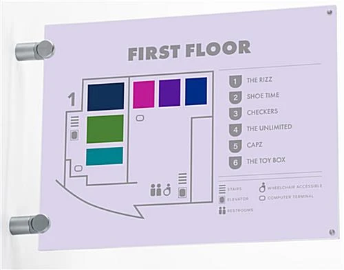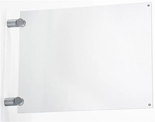 This corridor sign holder is great for name plates, directional signage, safety graphics, and more. Designed to function as a double-sided display, each clear acrylic unit features a magnetic closure to keep graphics in place. The 11” x 8.5” sign holder mounts directly to the wall using silver standoffs, making it great for use above doorways or in hallways. Ideal for busy environments such as hospitals, community centers, corporate offices, and hotels, these frames are capable of being quickly updated and changed. Many customers use the sign holder to post safety graphics, such as fire escape routes, while others use the frames to display wayfinding signage, such as name plates and room numbers. The unit mounts to the wall in landscape orientation only.