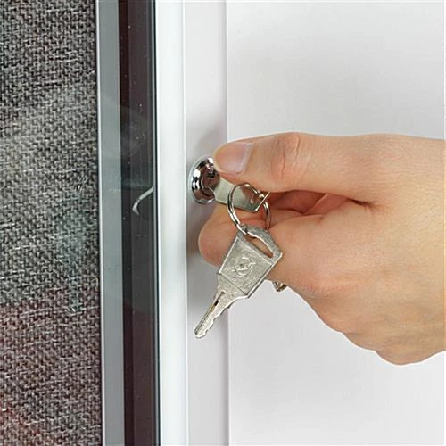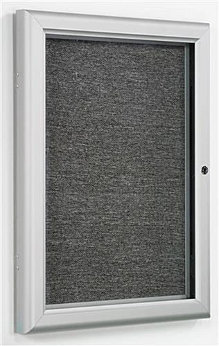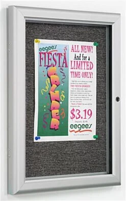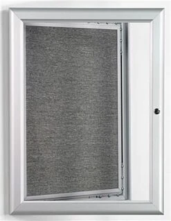 A tackboard, also known as an enclosed bulletin board, is a common information posting system. This tackboard is a smaller size and designed to draw attention to important, single sheet postings that can be change at any time. A fabricboard can accommodate standard 8-1/2″w x 11″h or 11″w x 17″h graphics straight from your printer. This tackboard has a single lockable door. The lock provides controlled access to the posting surface. Fabric bulletin board, tackboard is an example of contemporary elegance.