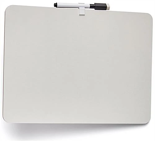 Our dry erase lapboard class packs have a single-sided, unruled melamine surface with a wooden back, making them a perfect addition to your non-profit, university, or virtual gatherings. Each kit contains a black marker with an eraser on its cap and a plastic clip that attaches to the board to prevent students from misplacing them. The write and wipe dry erase lapboard class packs are non-ghosting, meaning they will look new and clean for an extended time. Simply clean your response board with just a few easy swipes, and no marker residue or streaks will be left behind. These write and wipe whiteboards have rounded corners to eliminate sharp edges as an added safety feature. The high-quality mini markerboard design is lightweight but durable, making it great for homeschooling or notetaking in confidential meetings. Every mini whiteboard comes in a carton of twenty-four to provide you with a substantial number of markerboards for students in your classroom or extracurricular club. Our stackable dry erase lapboard class packs make virtual communications, lectures, and get-togethers even easier than before.