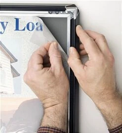 This black 13 x 19 snap frame is a wall mounted unit allowing you to promote merchandise professionally in any retail environment. The aluminum unit fits a 11.69 x 16.53 picture size, making it eye-catching while also being easily changed with its open face loading style. The chic snap frame offers either a portrait or landscape orientation, accommodating any image. The aluminum piece totes a 32mm flat profile design. With the snap frame’s picture size, and flexible plastic front lens, you can promote your different images behind the non-glare lens without fear of damage. Affordably priced, these units will provide years of long lasting use without exceeding your budget!