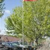 This “BBQ” banner flag, also known as a feather swooper, is a pre-printed advertisement display. Attract customers into your restaurant or concession with the message sign featuring red letters on a black background surrounded by flames. Including a 4 piece pole set with a ground spike each barbeque flag is designed for easy installation and setup. Measuring 14’h, the sign can easily be seen by passerby on foot and in cars. The curved pole design provides the flag with traditional feather swooper shape. Fabricated from a polyester knit mesh, the outdoor barbeque advertisement is purposed for fair weather conditions.