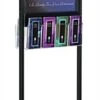 This 14” x 22” black poster stand is designed to effectively display your graphics, even in the busiest stores and lobbies. With a steel metal frame, weighted base, and glossy finish, our sign holder is durable and maintains a clean and professional appearance with each use. Double sided for a quick and efficient display, this indoor poster stand has a top loading insert to easily switch out graphics when needed. Why use old-fashioned signage that is often ignored when you can use a floor standing sign holder without disrupting traffic? Frame your advertisements with our poster stand for a striking visual showcase.