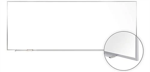 Conference rooms and classrooms alike will find this markerboard, magnetic white board useful. This magnetic white board, also known as a dry erase board, is made from porcelain on steel. The magnetic white boards hold up against scratching, denting, and staining. This magnetic white board features an aluminum frame, allowing it to look great in any environment. The magnetic surface is compatible with our rare Earth magnets , which work well for hanging posters to accentuate points during a presentation or lecture.