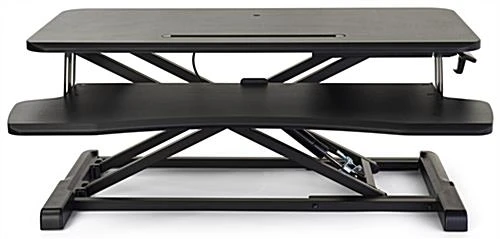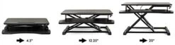 This gas-lift sit-stand desk converter is excellent for improving your comfort while working long hours in cubicles or home offices. The modern workstation offers the perfect amount of workable surface to fit your laptop, computer mouse, and writing tools. Our ergonomic gas-lift sit-stand desk converter with keyboard tray is height adjustable ranging from 4.5″-20″, encouraging movement throughout the day. You can quickly alternate from sitting to standing with the lever located underneath the side of the unit. The work surface is made of PVC on durable MDF, ensuring years of use. The heavy-duty construction can hold a max weight capacity of 33 lbs, ideal for storing your everyday work supplies. Use this sit-stand desk converter with a keyboard tray to take a break from sitting and increase your productivity during long work hours.