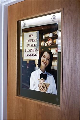 This sign cover, clear plastic poster sleeve is designed for displaying 18″ x 24″ advertisements in windows or on a wall. These displays will protect the print from becoming bent or torn. This clear plastic poster sleeve, often referred to as a sign holder, will keep the art looking sharper longer. These frames include suction cups and adhesive tape for multiple display options. This print display, clear plastic sleeve may also be used in conjunction with ceiling hanging kits, which are sold separately. When this art holder is mounted using tape, it can showcase in portrait or landscape orientation. However, when this clear plastic sleeve uses the suction cups, it can only present a vertical image. This holder loads at the top for portrait format and the side for a landscape format. This unit is a clear plastic poster sleeve that is versatile with many display options. This frame can accommodate (2) signs when mounted with the suction cups. This cover is a clear plastic poster sleeve that is for business use, but can be displayed in domestic settings as well.