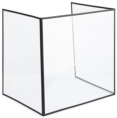 This PVC desktop splash shield is excellent for social distancing in shared workspaces and making sure public health is prioritized at high schools, offices, conference rooms, and more. Our scratch-free sneeze guards come in a pack of 10, making this a more sensible solution for those looking to buy in bulk for the right value. The transparent 20″ x 20″ PVC desktop splash shield has 3 protective dividers that can easily be folded for transportation from one room to the next. The sneeze guard is free standing and will not bow, thanks to the rigid frame design. This protective hygiene barrier is an excellent way to enforce public health guidelines while lowering the risk of spreading harmful viruses during everyday transactions. The leatherette frame with aluminum trim offers a sturdy yet lightweight construction, perfect for durability and long-term usage. Use our social distancing 3-panel PVC desktop splash shield as a divider amongst yourselves and customers at cashiers, reception desks, hostess stations, and more.