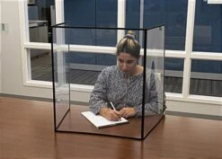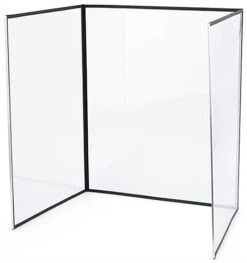 The 3-panel desktop hygiene barrier is an easy, effective way to enforce social distancing regulations within shared spaces. This 20″ x 24″ splash shield comes in a pack of 10, making it the perfect solution to buy in bulk for the right value for schools, office clerks, cashiers, restaurants, and more. Our protective 3-panel desktop hygiene barrier has anti-scratch PVC screens that will last for years to come. The sneeze guard has an aluminum frame with leatherette trim for a sleek, professional look. The transparent PVC splash shield is a great way to help lower the chances of transmitting viruses by creating a divider between your employees and patrons. Our sneeze guard can easily fold, making it convenient to pack up and transport from one room to the next. Use our protective social distancing screen divider to take extra precautions within your establishment while keeping customers’ and guests’ minds at ease. Our durable 3-panel desktop hygiene barrier is freestanding and will not bow while in use at libraries, higher education spaces, offices, and more.