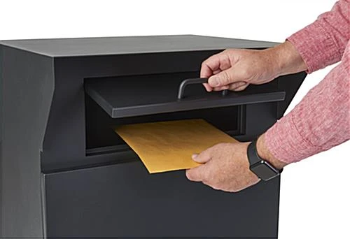 Our outdoor package drop box is the perfect parcel locker for mail, packages, books, and more! Each envelope bin features a heavy-duty powder-coated steel build that is durable and weather-resistant. This locking outdoor package drop box has a top door lined with a rubber gasket that automatically closes between uses to keep the inside dry and contents safe during rain or snow. Two keys are also included with the unit. This steel parcel locker can be used inside or outside and is perfect for college campuses, libraries, property management offices, and shipping centers. The locking door feature allows items inside to stay secure in public environments. The unit weighs 78 lbs, allowing it to remain firmly in place during high winds and inclement weather. This heavy-duty outdoor drop box provides versatility in end-use, making it an excellent option for rental car key returns, library books, everyday mailing needs, and more!