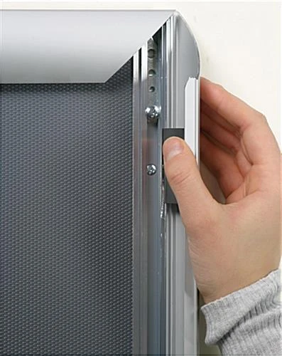 Some of our wall frames, including this wall frame are accented with a sleek, rounded profile. As a result, this feature gives the picture frame a more defined and stylish look. The wall frame also boasts a satin aluminum finish which complements your art or advertising sign nicely, without hindering its appeal. Each of the corners on this wall mounted sign frame is mitered and aligns when closed. Buy this wall frame for its high quality and durability!