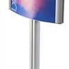 The backing board is permanently mounted to the inside of the frame and can accommodate posters up to 1/16″ thick. The overall size of this poster frame is 23 1/2″w x 29 5/8″h x 1 1/4″d. The rounded aluminum outer frame is approximately 1″ wide on each side. This silver poster holder is designed for interior use only. This silver poster holder comes fully assembled and is very easy to mount to your walls.