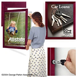 Grab your customer’s attention with this stylish and very functional Wide Wood SwingFrame poster picture frames. These high quality poster picture frames are mounted with an easy to use gravity latch system that allows you to change posters often and with very little effort. These Mahogany finished poster picture frames give your poster an upscale look. This unit is designed for posters with dimensions of 22″w x 28″h. The outside dimensions of these poster picture frames are 23 3/8″w x 29 3/8″h x 1 7/8″d. A plunge lock provides security when the frame is closed.