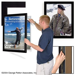 The simple and effective gravity latch system keeps the frame closed and is hidden out of view. Mounting instructions and hardware are included. This poster holder comes fully assembled and is very easy to mount on your walls. This product is designed for interior use only.