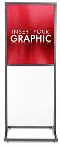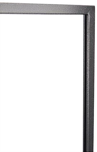 This metal sign holder is one of our most popular double-sided metal poster stands. This metal sign holder is constructed from metal with a sophisticated, charcoal-speckled finish. The upscale, charcoal-speckled finish makes this metal sign holder perfect for use in banks, restaurants, retailers, colleges and museums. This metal sign holder, also known as a display sign holder, allows you to display two posters at once. Place a metal sign holder in any busy area to catch customer’s attention.