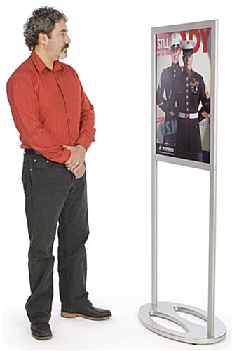 These poster displays, sign frames are easy and reliable for frequent use. Make your advertisements stand out from the crowd by using these sign frames! Fabricated from durable metal, these sign frames are constructed to last for a long time. These sign frames have a brushed silver finish with a simple design, adding an attractive touch to the graphic displayed. Display any 22″ x 28″ graphics on both sides using these sign frames. These menu displays, sign frames also allow fast and easy sign changes! Graphics can be slid in and out from the top channel.