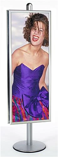 The metal snap frames, better known as grip frames sit on an 6ft’ pole and feature two back-to-back display holders to beautifully exhibit your posters. Buy these double-sided grip frames to display in your store and advertise multiple sales at once! A large 22″ x 56″ vertical grip frame, also known as a snap frame product are simply stunning on this poster stand. These sturdy displays will last so long, you won’t even think about purchasing other types of display holders. Grip frames are such a superior product; they make other display equipment obsolete.