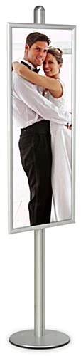 This sign display helps your message stand out! EIGHT FEET TALL with a large 22″w x 56″h Snap Open Frame! This sign display is manufactured with sturdy and durable aluminum with an attractive brushed finish. The sign display, also known as a poster holder, comes with one 22″w x 56″h clip frame. This large display stand helps your graphic capture attention in large or crowded areas. Towering above other sign displays, this 8ft tall display sign makes a noticeable impact at a low impact price! These sign display units work best in large indoor areas with high foot traffic. This display sign is best suited for building entryways, bank foyers, large retail stores, shopping malls and building and hotel lobby areas.